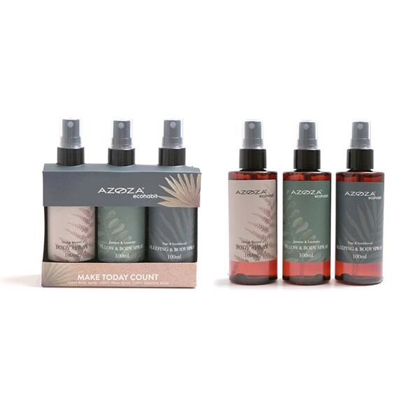 Azoza Eco aromaspray 3-pack – kroppsspray, kuddspray och sömnspray, 3 x 100 ml