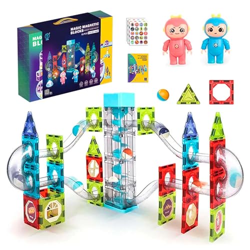 CELMAN Magnetiska byggstenar 75 delar, magneter, byggklossar, kulbana med tillbehör, Montessori-leksaker, magnetkulbana för barn från 3 4 5 6 7 8 år, STEM, pedagogisk leksak, gåva