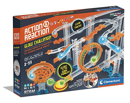 Clementoni 59304 Action & Reaction Glow Effect, flerdelad byggsats för att bygga en kulbana, med ljusa bollar, leksaker för barn från 8 år