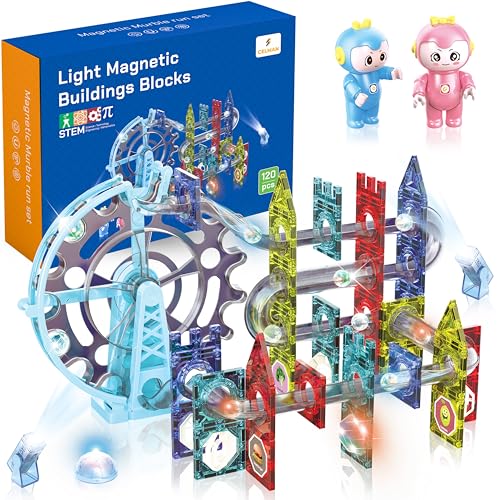 CELMAN Magnetiska byggstenar 120 delar, magneter, byggklossar, kulbana med tillbehör, Montessori-leksak, magnetkulbana för barn från 3 4 5 6 7 8 år, STEM, pedagogisk leksak, gåva
