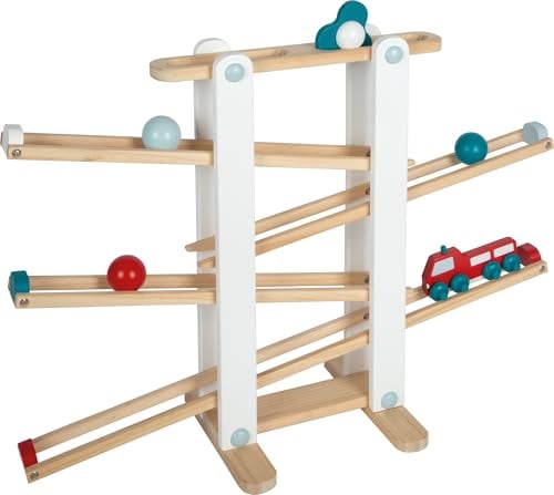 goki 53781 – kulspel ljudkaskad av trä, kulbana med melodi för finmotorik och hörsel, pedagogiska leksaker för barn inklusive 2 kulor och förvaringsfack, 13 x 13 x 30 cm, set om 3, från 3 år