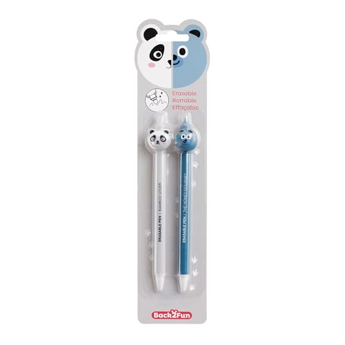 Back2Fun 2-pack raderbara pennor, värmekänsligt blått bläck, djurhuvud med suddgummi, roliga kulor, kreativa skrivmaterial för barn, tänkt för att skriva, rita eller ge bort