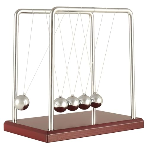 Newton kulventil – kulspel – 5 kulpendel – kulpendel för skrivbord – Newton pendel 19 cm hög på träbas, newton vagga med ramar och stålkulor av hög kvalitet