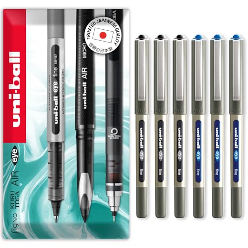 uni-ball EYE – UB-157 kulspetspennor – 0,7 mm spets – i presentförpackning (paket med 6, svart och blå)