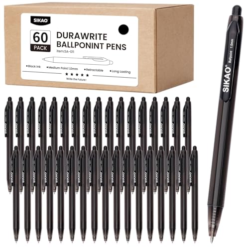 Sikao svarta kulspetspennor 60-pack fin spets smidig skrift inget fläckar 0,7 mm (svart bläck)