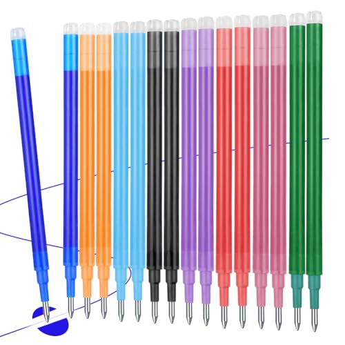 Vicloon Påfyllning för raderbar gelpenna, 16 st 8 färger rollerballpåfyllning, 0,7 mm raderbara påfyllningspennor, bläckpåfyllning med slät skrivning, utbytbara kulspetspennor