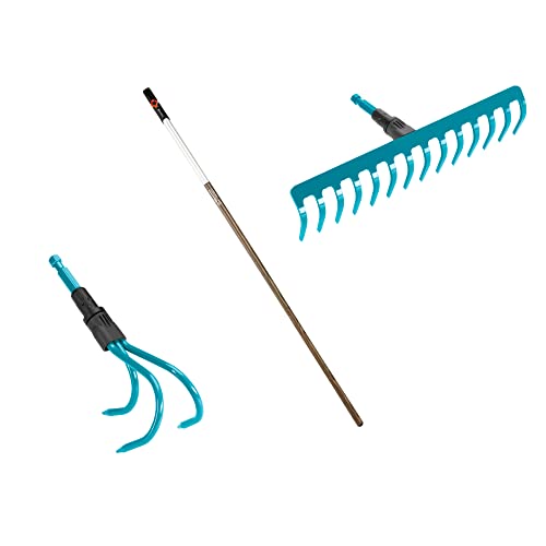 Gardena combisystem jordvårdsset: Set bestående av kratta, kultivator och 130 cm trähandtag, lämplig för jordbearbetning och ogräsborttagning samt för att lossa och lufta jorden (17355-60)