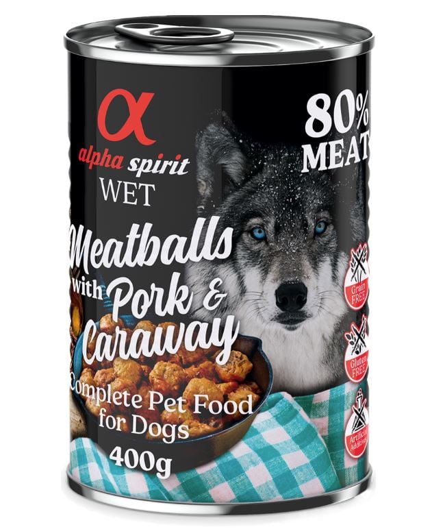 alpha spirit Dog Meatballs 6 x 400 g - Fläsk & kummin