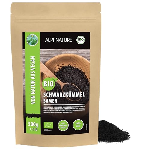 Ekologisk svart kummin hel, svart kummin frön från kontrollerad ekologisk odling, glutenfri, laktosfri, laboratorietestad, vegan, 100% naturlig utan tillsatser, svartkumminfrön (500 GR)
