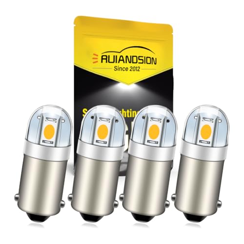 Ruiandsion BA9S LED-lampa BA9 1895 1891 53 57 varm vit 6 V LED-lampa 3030 2SMD-chip-set LED-ersättningslampor för bilinredning kupol karta registreringsskylt handskfacksbelysning (4-pack)