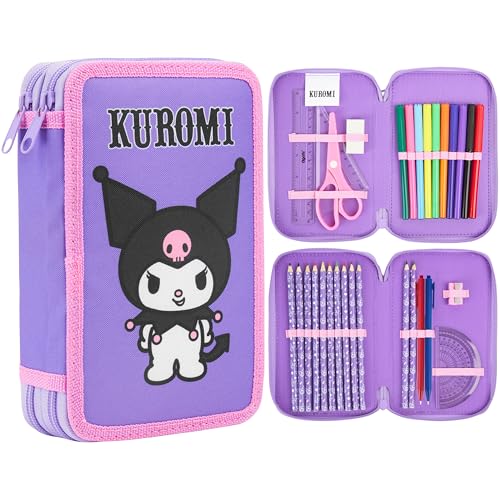 Kuromi Sanrio presentidé, Hello Kitty pennfodral flicka fylld med skolsaker färgpennor filtpennor cinnamoroll, 24.5x20.5x4cm