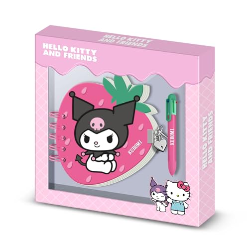 Hello Kitty Kuromi jordgubbe-paket med jordgubbsdagbok + 6-färgad penna, rosa