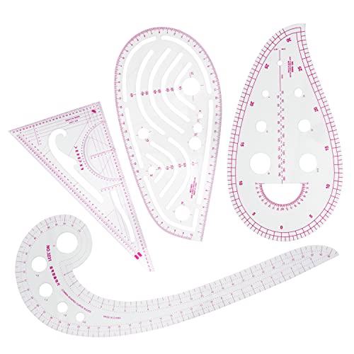 ZENVALY Linjal sömnad, klänningslinjal, fasad transparent linjal, plastsömnadsverktyg gör-det-själv sömnad linjal set kurvlinjal för sömnad, sömnadsverktyg, 4 stycken