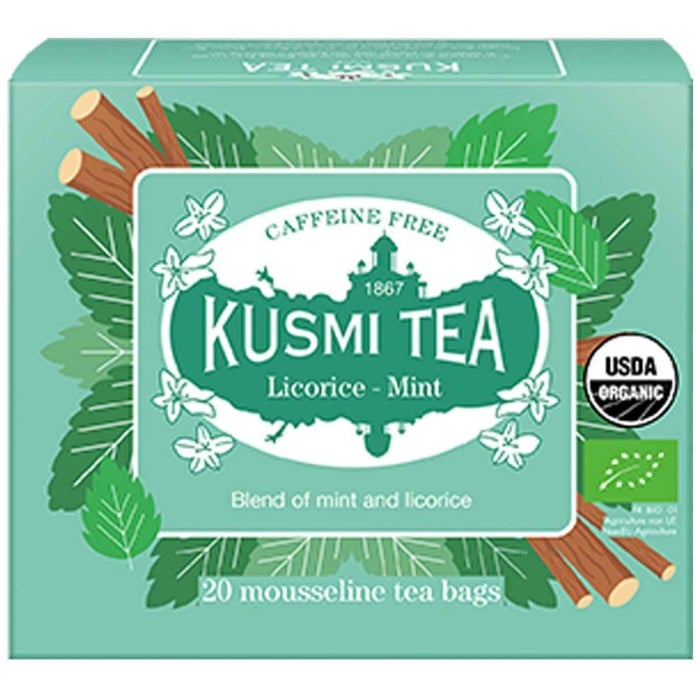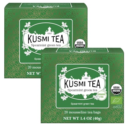 Kusmi Tea - Spearmint Green - 2 burkar - Ekologisk blandning av Gunpowder och Pepparmint Grönt Te - Avnjut det varmt eller isat - Smaksatt Grönt Te - 2x20 Tepåsar