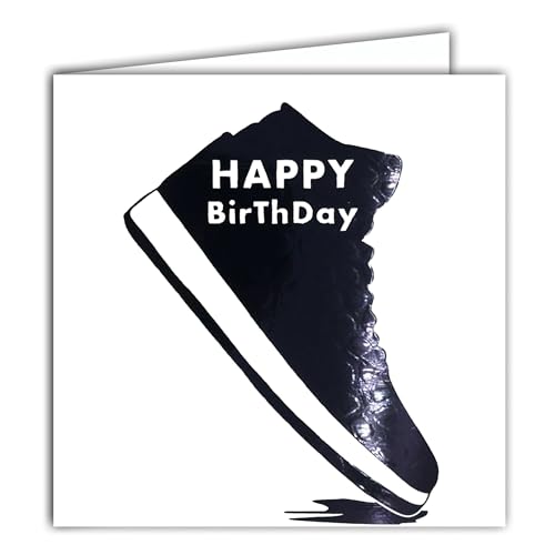 22232 Fyrkantigt kort grattis på födelsedagen sportsko svart korg mode glänsande - med vitt kuvert 15 x 15 cm - skapelse utgåva tryckt i Frankrike - dröm ordkollektion