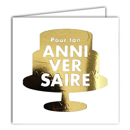 22206 Fyrkantigt kort för din födelsedag på en glänsande guldkaka med vitt kuvert 15 x 15 cm vit interiör - kreation fransk tryckt utgåva - dröm ordkollektion