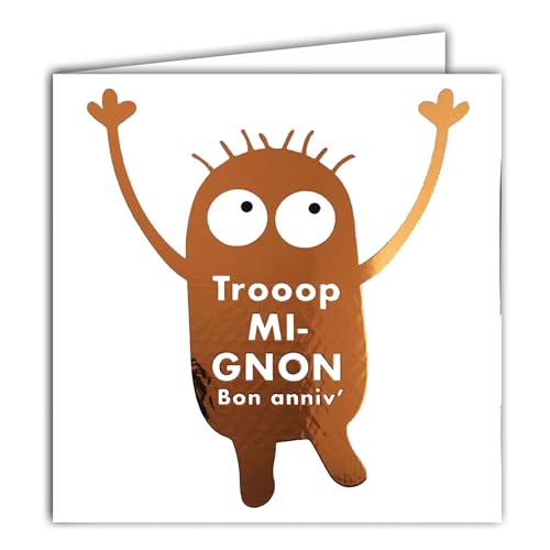 22221 Fyrkantigt kort bra födelsedag för söt glänsande orange karaktär - med vitt kuvert 15 x 15 cm - fransk tryckt utgåva skapelse - dröm ordkollektion