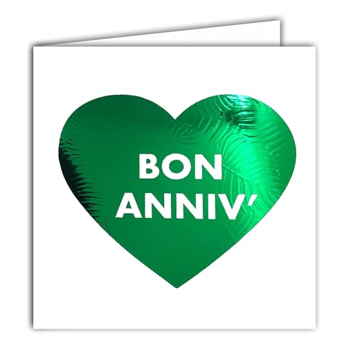 22203 fyrkantigt kort bra födelsedags födelsedag på ett briljant grönt hjärta med vitt kuvert 15 x 15 cm - vit innerkarta - kreation tryckt utgåva tillverkad i Frankrike - dröm om ordkollektion