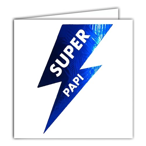 22251 fyrkantigt kort för en Super PAPI BON-PAPA FADDERFAR FADDERN Blixt Blå Rock - med vitt kuvert 15 x 15 cm födelsedag eller fest - tryckt utgåva skapad i Frankrike