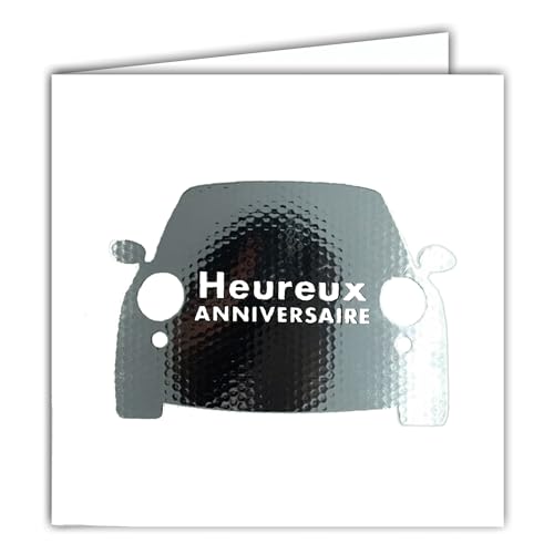 22234 Happy Birthday's Square Card Briljant Silver Engelsk bil - med vitt kuvert 15 x 15 cm - kreation tryckt utgåva tillverkad i Frankrike - dröm ordkollektion