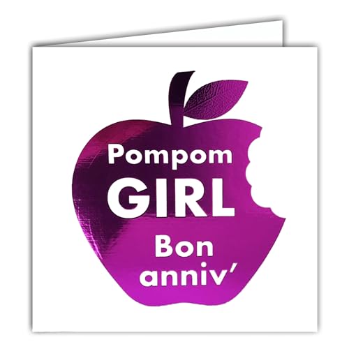 22226 Fyrkantigt kort bra födelsedag cheerleader glänsande rosa tuggäpple - med vitt kuvert 15 x 15 cm - fransk tryckt utgåva skapelse - dröm ordkollektion