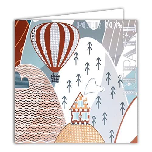 Afie 22104 kort med fyrkantigt kuvert 15 x 15 cm för din start silver glänsande präglad texturerad ballong önskar lycka flyttning eller pensionering god fortsättning gåva - tillverkad i Frankrike