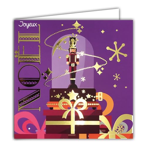 God jul kort i glänsande guld guld med vitt kuvert 15 x 15 cm - Nötknäpparen kung prins fairy balett present stjärna dansare musik Tchaikovsky högtid fest - tillverkad i Frankrike