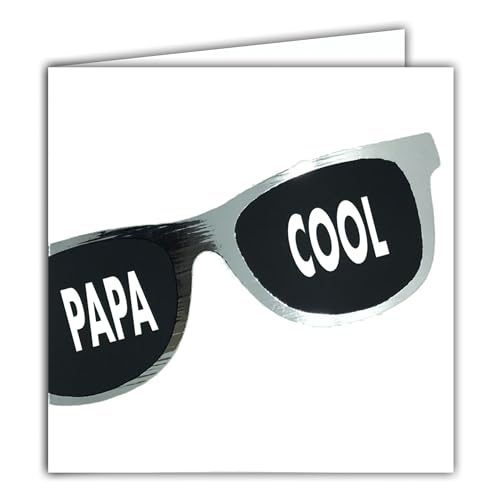 22249 fyrkantigt kort för en cool PAPA Cool solglasögon i silver - med vitt kuvert 15 x 15 cm - födelsedag eller fars dag - kreativ tryckutgåva tillverkad i Frankrike