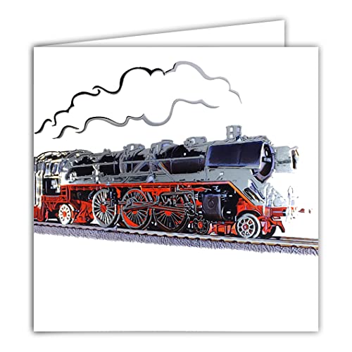 Afie 22115 vit inner-text-kort med fyrkantigt kuvert 15 x 15 cm Silver ångtåg, glänsande för Ferrovipathe Ferroviphile Fan Järnvägar -Tillverkad i Frankrike