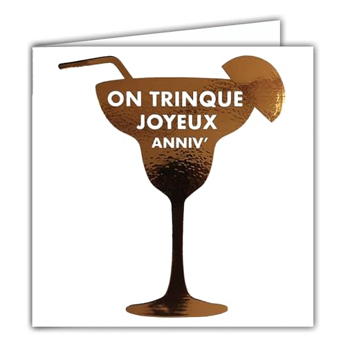 22236 Glad födelsedag fyrkantig karta på trinque glänsande koppar orange cocktailglas - med vitt kuvert 15 x 15 cm - kreationsutgåva fransk tillverkad kollektion dröm ord