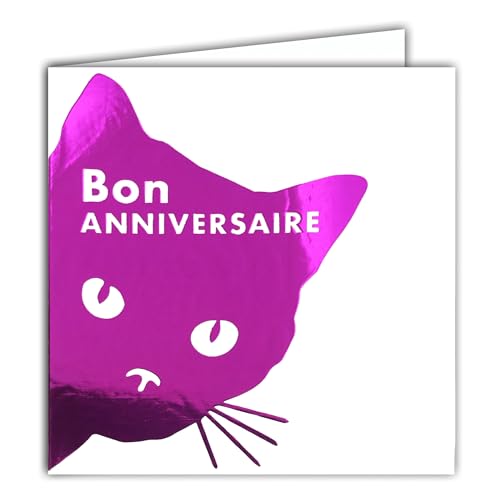 22215 Kvadratiskt bra födelsedagskort på glänsande rosa fuchsia katthuvud - med vitt kuvert 15 x 15 cm - skapelse tryckt utgåva tillverkad i Frankrike - dröm ordkollektion