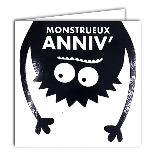 22222 Monstruös födelsedag fyrkantig karta glänsande svart spindel silhuett - med vitt kuvert 15 x 15 cm - fransk tryckt utgåva skapelse - dröm ordkollektion