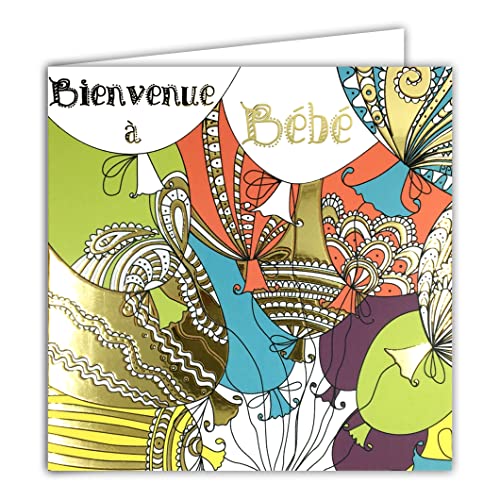 Afie 22095 kort med fyrkantigt kuvert 15 x 15 cm Välkommen till BEBEBÉ FELICITATIONS för födelse eller adoption gyllene texturerad präglad ballonger att erbjuda föräldrar - tillverkad i Frankrike