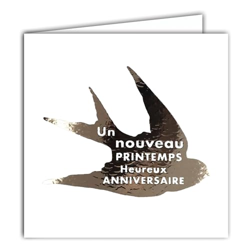 22214 Happy Birthday Square Spring Swallow Card i glänsande roséguld med vitt kuvert 15 x 15 cm - skapelse tryckt utgåva tillverkad i Frankrike - dröm ordkollektion
