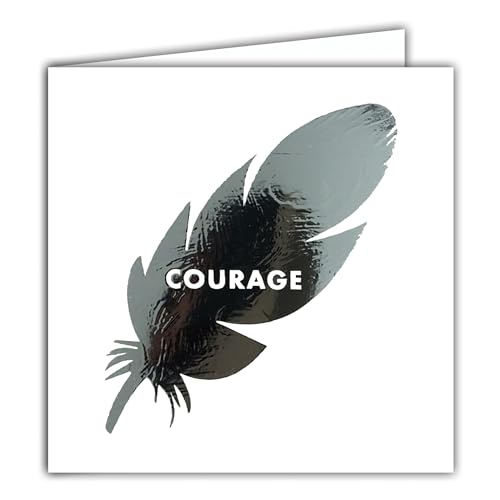 22248 Kvadratiskt kort Running Fågelfjäder i silver lysande uppmuntrande ord tröstande uppmuntrande ord sympati stöd i svårigheter sorg klagomål återhämtning med kuvert 15 x 15 cm