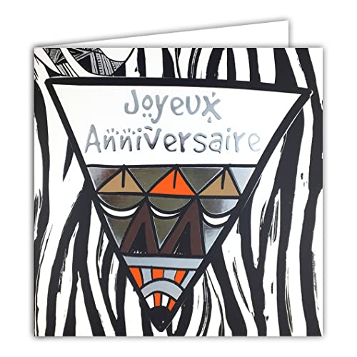 Afie 22101 kort med fyrkantigt kuvert 15 x 15 cm glad silver glänsande präglad texturerad zebra etnisk chic litet budskap ord önskemål för dig att fira - tillverkad i Frankrike
