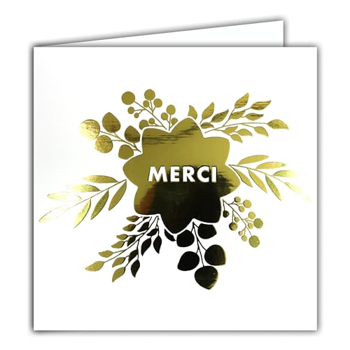 22247 fyrkantigt kort tack vare blombukett guldlövverk glänsande guld tack - med vitt kuvert 15 x 15 cm - kreativ tryckutgåva tillverkad i Frankrike