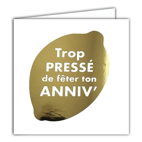22209 Fyrkantigt kort för att fira din födelsedag på en citron i glänsande guld med vitt kuvert 15 x 15 cm - kreation i fransk tryckutgåva - dröm ordkollektion