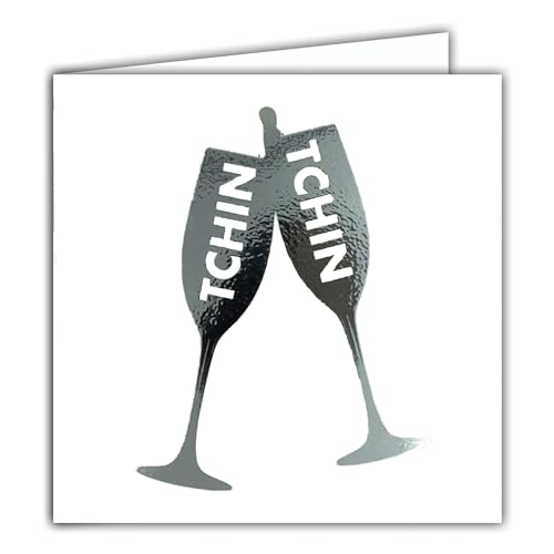 22239 Tchin Tchin fyrkantigt kort 2 glänsande silverchampagneflöjter med vitt kuvert 15 x 15 cm festdag grattis bästa lyckönskningar lycka kärlek hälsa inquer - tillverkad i Frankrike