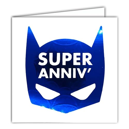 22227 Super-födelsedags superhjältemask med lysande blå Batman - med vitt kuvert 15 x 15 cm - fransk tryckt utgåva skapelse - dröm ordkollektion