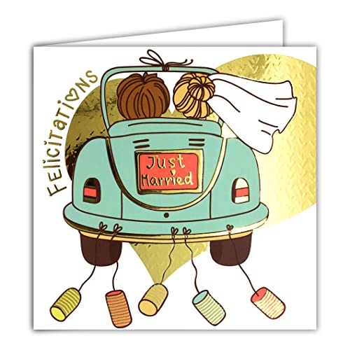 Afie 22113 kort med fyrkantigt kuvert 15 x 15 cm FELICITATIONS MARIAGE Just Married Gold Heart texturerat Bil gifta par heterosexuella ceremoni Lyckönskningar glädje - tillverkad i Frankrike
