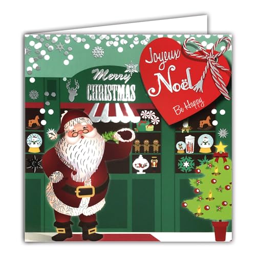 Lysande silver god jultomte fyrkantigt kort med vitt kuvert 15 x 15 cm - knock knock hjärta slå in i butiken godsaker gran dekorationer 25 december helgdagar slutet av året - tillverkad i Frankrike