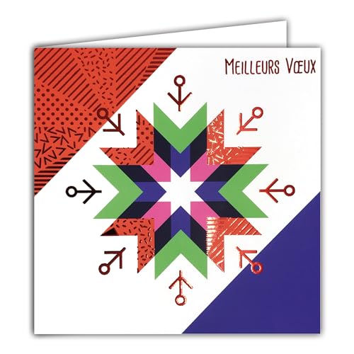 Briljant rött bästa hälsningskort med vitt kuvert 15 x 15 cm - geometrisk färgglad stjärnflinga gott nytt år vinter - tillverkad i Frankrike