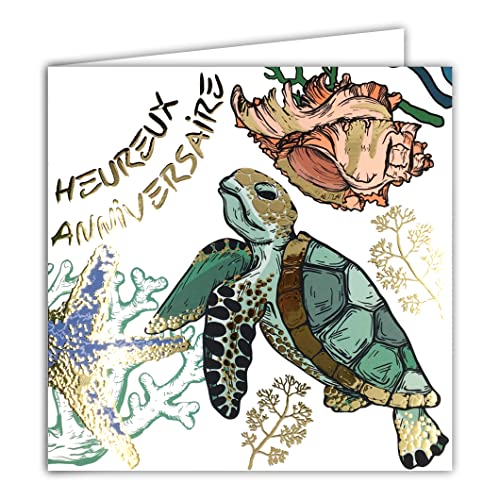 Afie 22094 kort med fyrkantigt kuvert 15 x 15 cm lycklig födelsedag i guld glänsande marinblå sköldpadda i texturerad präglad att ge till ett barn, pojke, flicka eller vuxen, man, kvinna - tillverkad