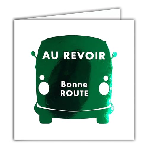 22245 Fyrkantigt kort avgång adjö god väg fortsättning pensionering eller flyttning livsförändring Van Hippie 60s grön glänsande frihet resor - med vitt kuvert 15 x 15 cm tillverkat i Frankrike