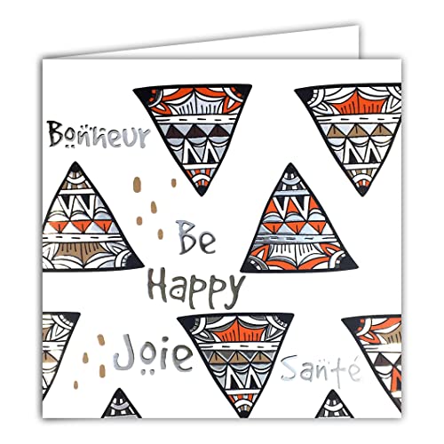 Afie 22100 kort med fyrkantigt kuvert 15 x 15 cm var glad glädje lycka god hälsa silver ord glänsande texturerad präglad etnisk chic litet meddelande önskningar för dig fest - tillverkad i Frankrike