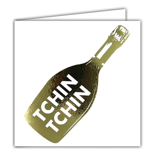 22238 Tchin Tchin Fyrkantigt kort glänsande guld champagneflaska med vitt kuvert 15 x 15 cm festdag grattis bästa lyckönskningar lycka kärlek hälsa inquer tillverkad i Frankrike