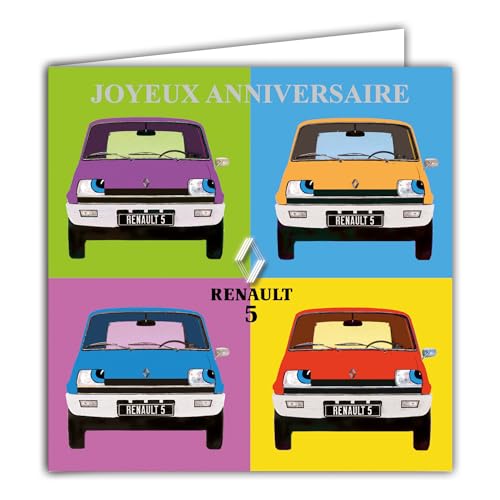 CPMD15167N2 fyrkantigt kort med vitt kuvert format 15 x 15 cm - R5 POPART/officiell Renault Auto Passion & Collections-licens - med glänsande effekt - vit interiör - tillverkad i Frankrike