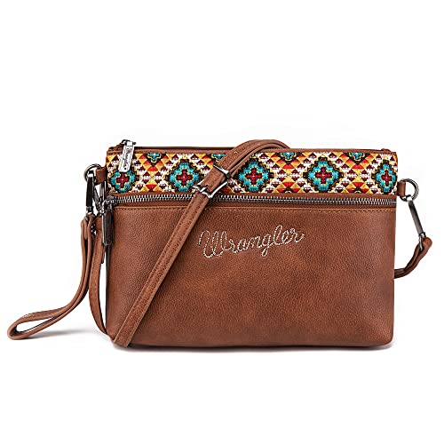 Wrangler Western Crossbody väskor för kvinnor kuvertväska handledsväska, Broderad brun