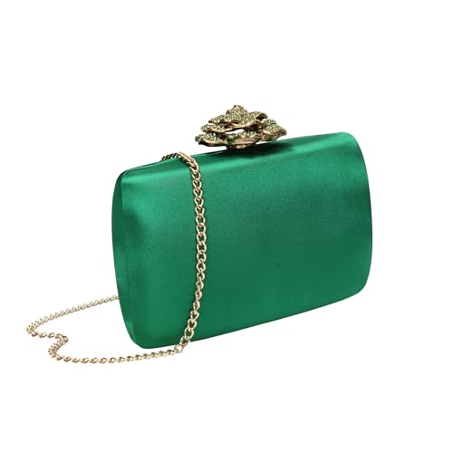 Miss Lulu Elegant ceremoni kuvertväska, sammet dam kuvertväska, elegant kopplingsväska, axelväskor med avtagbar kedja för bröllop, fest och bankett, Grön